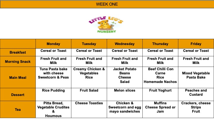 At Little Leo’s nursery we know and understand how vital good nutrition is for young children – we are proud to serve every child with freshly prepared food from our carefully designed 3-week menu cycle. These menus are nutritionally planned, balancing food groups, appropriate portion sizes, salt and sugar intake. Our yummy dishes also provide children with a rich variety of textures and tastes, offering a balance of carbohydrates, colourful vegetables, proteins, pulses and fresh fruit throughout the week. Meal times are a great opportunity for nursery practitioners to bond with your child – these are sociable learning opportunities where we teach the children about good manners, and encourage them to feed themselves independently. All cultural backgrounds, dietary requirements and food allergies of every child are respected and we work closely with all parents / carers to ensure that their child's needs are catered for.